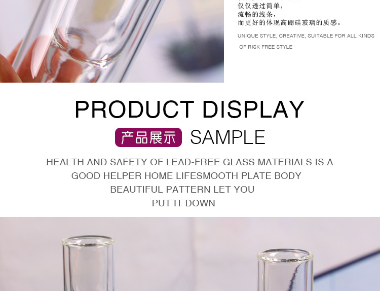 公司产品包括高脚杯,水杯,烈酒杯,威士忌杯,啤酒杯,花瓶, 果盘,水壶,烛台,醒酒器等各类人工、机制产品,及烤花、喷漆、电镀、打砂、刻花、等各种后加工。产品均通过了SGS,FDA,BV和LFGB测试,在使用上完全能够保证安全性与实用性。工厂已通过SEDEX 验厂,并且获得了欧洲大部分客户的认同。该验厂从人权,员工福利,生产质量流程都有严格的标准,而我司好的验厂结果,无疑笃定了瑞信在整个玻璃深加工的龙头企业的地位。